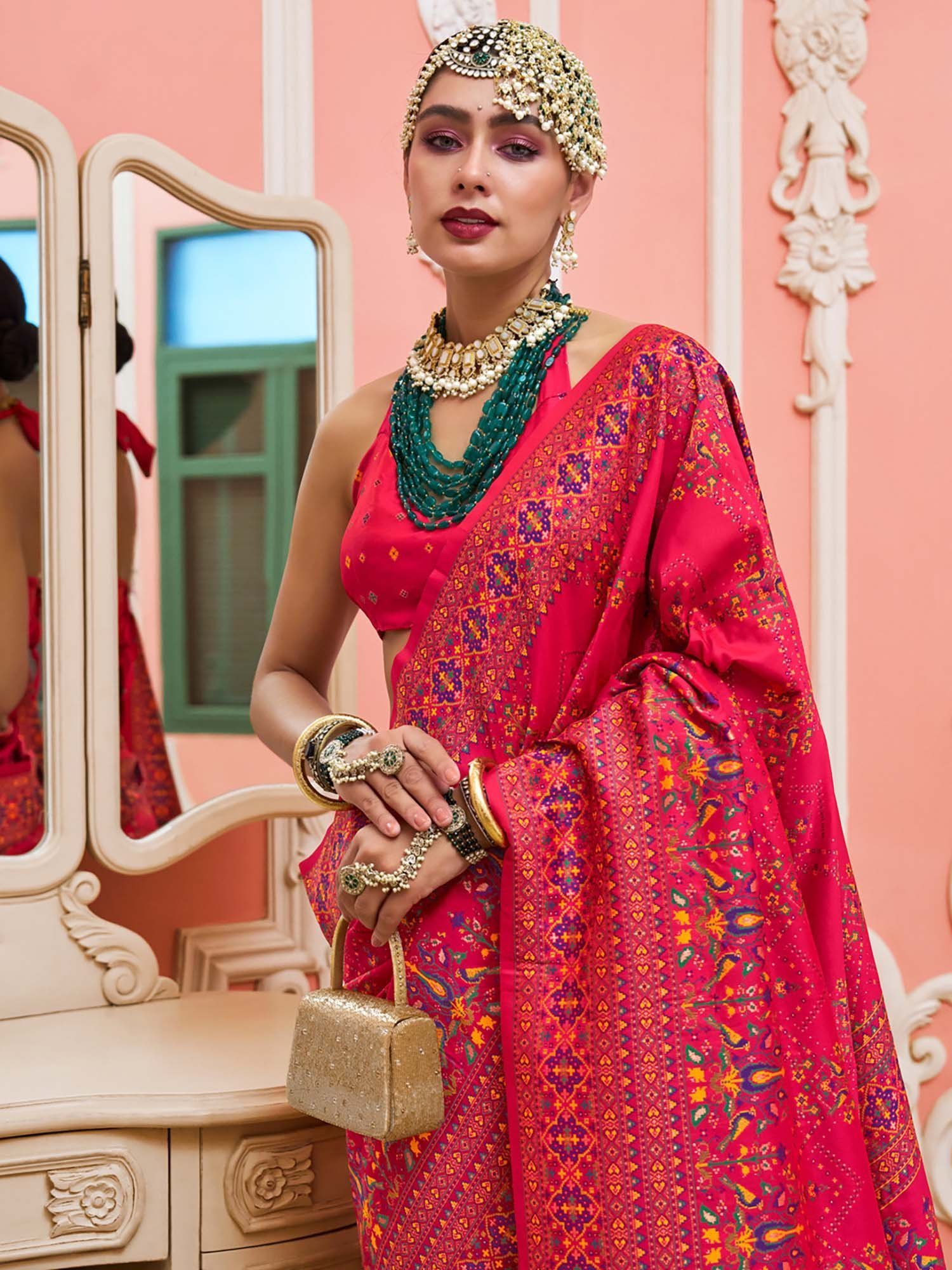 Womens Silk Blend Pink Woven Design Saree with Unstitched Blouse